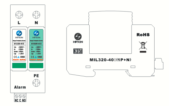 adopts to 35 mm DIN TTW Guide installation. The surge protection module can be changed independently, which